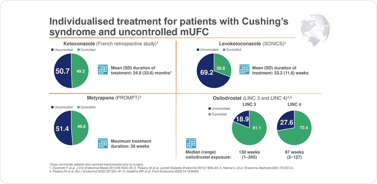 €Biller BM, Newell-Price J, Fleseriu M, et al. (LINC 3). OR16-2 osilodrostat treatment in Cushing's disease (CD): results from a phase III, multicenter, double-blind, randomized withdrawal study. J Endocr Soc 2019;3